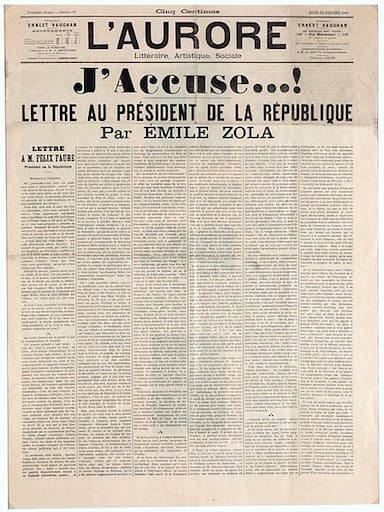 Evénement historique Publication de l’article « J’accuse » d'Émile Zola